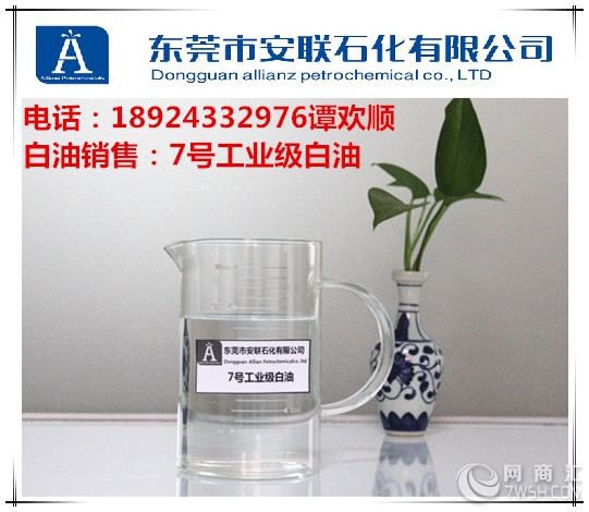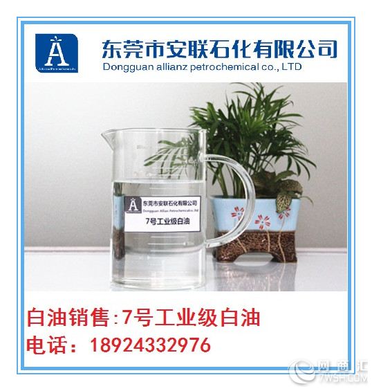 **概述** 安联石化的7号工业级白油是无味、无荧光、无色、透明的油状液体,它是由加氢裂化生产的基础油为原料,经深度脱蜡化学精制等工艺处理后得到的白色油。 **性能** 7号工业级白油具有良好的抗氧化性,耐黄变性,粘温性能化学稳定性,无色、无味、不腐蚀纤维纺织物。 **用途** 7号工业级白油适用于热塑性弹性体(TPR,TPE,TPV,TPU...),高性能改性塑料(SBS,SEBS...),橡塑制品(软胶玩具,鞋材...)高档润滑油,润滑脂,皮革软化剂;也适用于化学、纺织、 化纤、电油化工、电力、农业等行业,也可用于PE、PS、PU等生产。 **注意事项** 7号工业级白油是可燃物,所以存放和使用的场地应禁止使用明火。