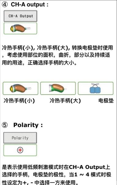 施术方法:步:把电极垫贴到远离施术部位的皮肤上